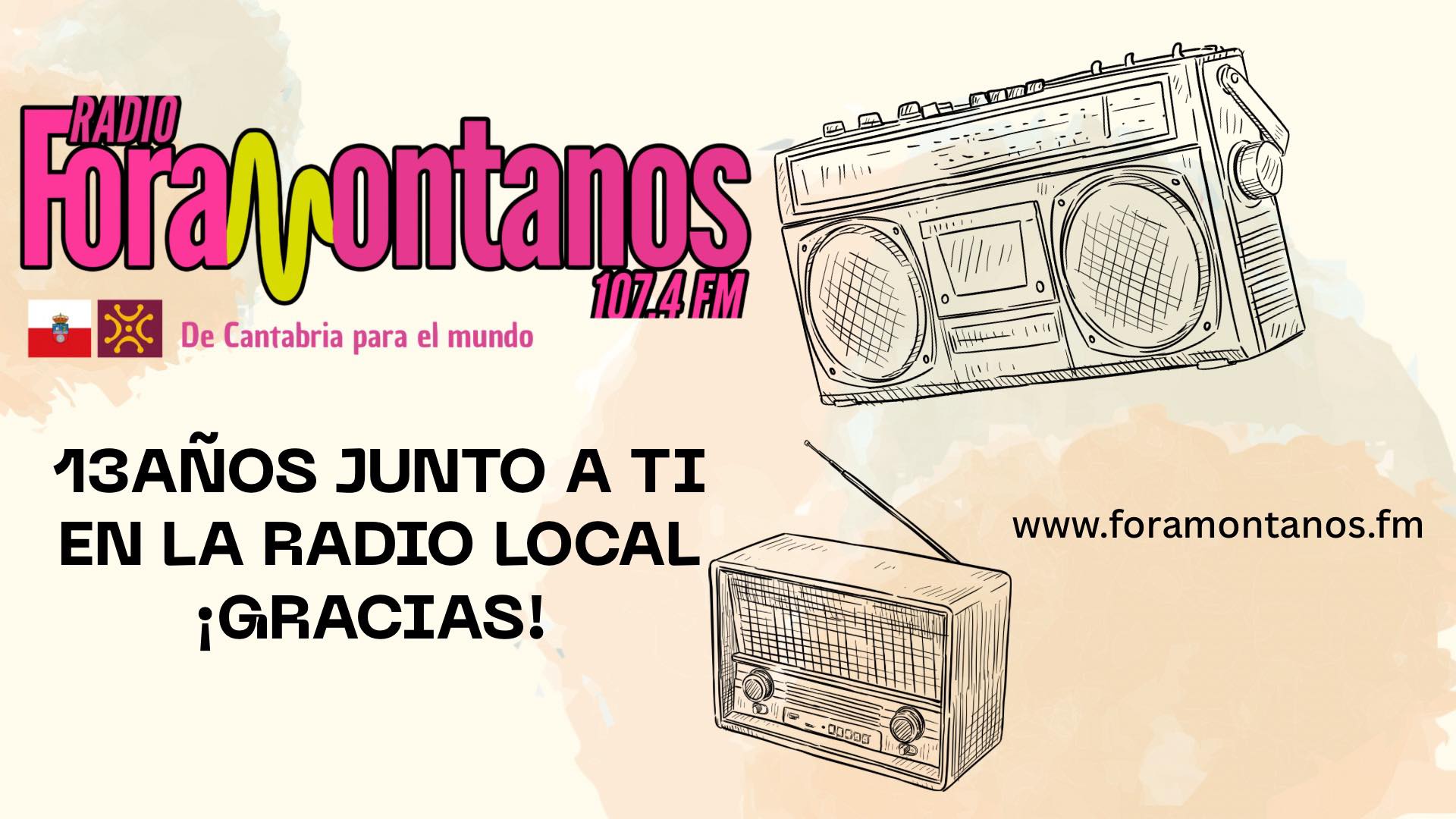 Hoy es nuestro 13 Aniversario en las Ondas , os queremos dar las gracias por estar ahí 📻 al otro lado del 107.4 en la Frecuencia Modulada o en Internet tanto , web , apps y Alexa
